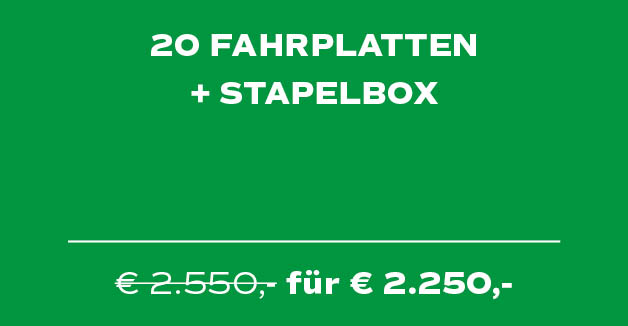 Stapelbox + 20 A-Qualität Fahrplatten (3000 x 1000 x 20 mm)