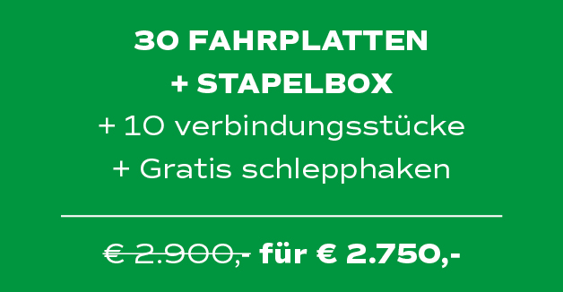 Stapelbox + 30 A-Qualität Fahrplatten (2400 x 1200 x 15 mm)