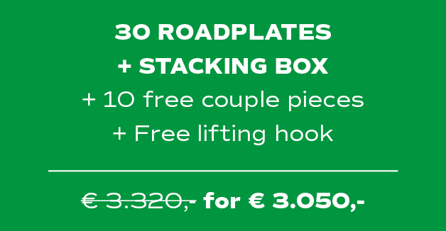 Stacking box + 30 A quality roadplates (3000 x 1000 x 20 mm)