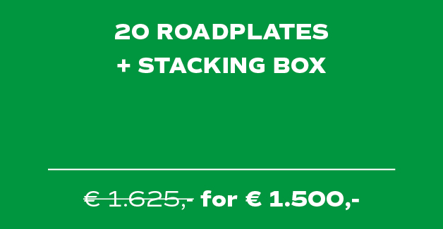 Stacking box + 20 A quality roadplates (2000 x 1000 x 15 mm)