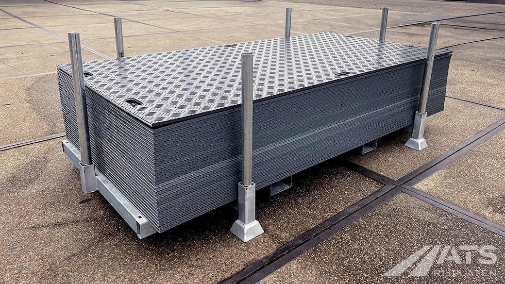 Stacking box + 30 A quality roadplates (2400 x 1200 x 15 mm)
