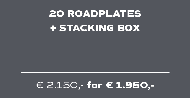 Stacking box + 20 A quality roadplates (2000 x 1000 x 15 mm)
