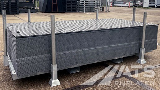 Wil je gaan voor kwalitatieve rijplaten die jarenlang meegaan? Dan ga je voor onze A-kwaliteit kunststof rijplaten. Deze rijplaten zijn beschikbaar in verschillende maatvoeringen en ze zijn belastbaar tot 30 ton. De platen zijn voorzien van een enkelzijdig antislipprofiel. Verder heb je de mogelijkheid om je bedrijfslogo en -naam te laten frezen op de platen voor herkenbaarheid. En ook niet onbelangrijk: deze A-kwaliteit kunststof rijplaten zijn 100% vervaardigd uit gerecyclede kunststof.